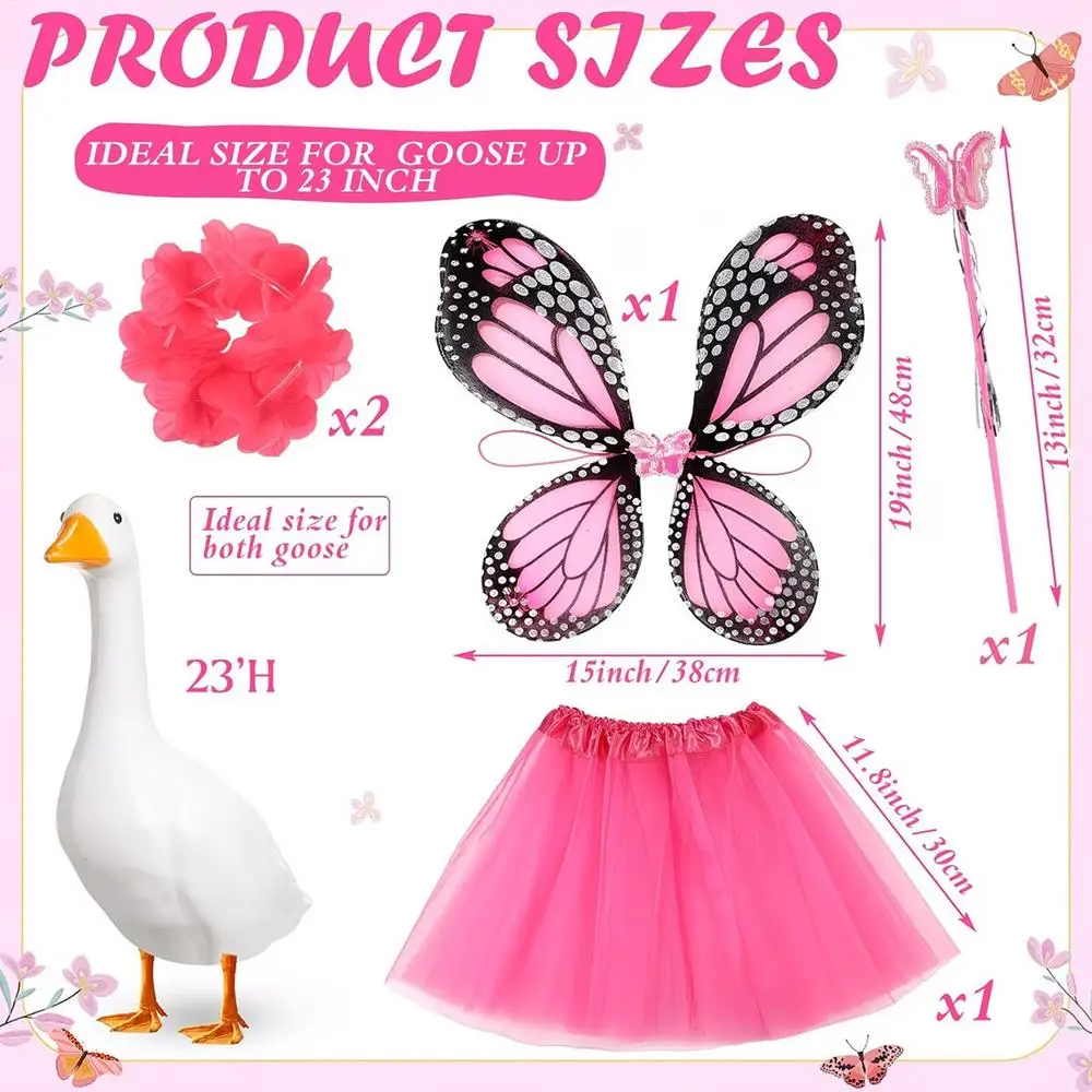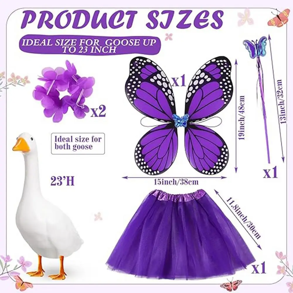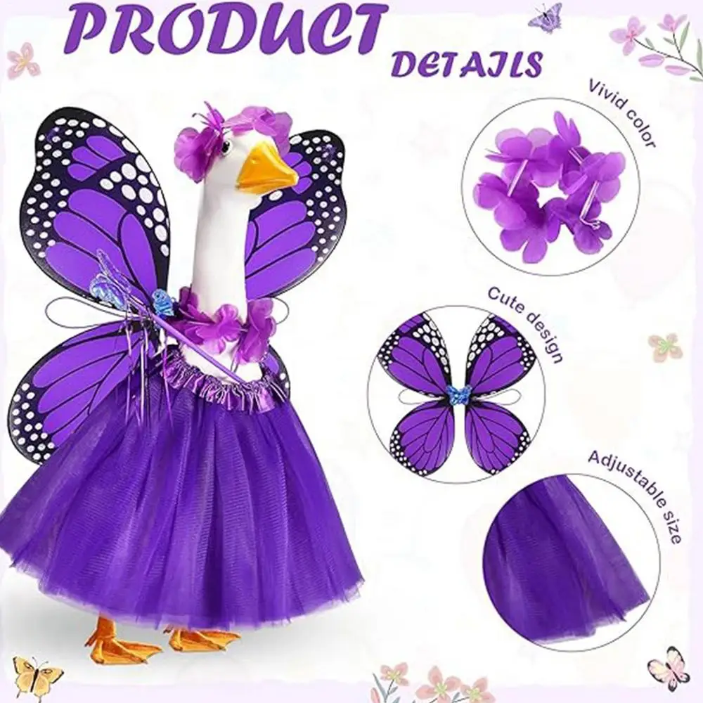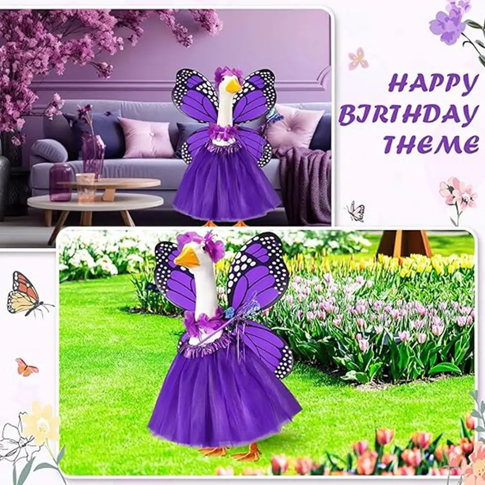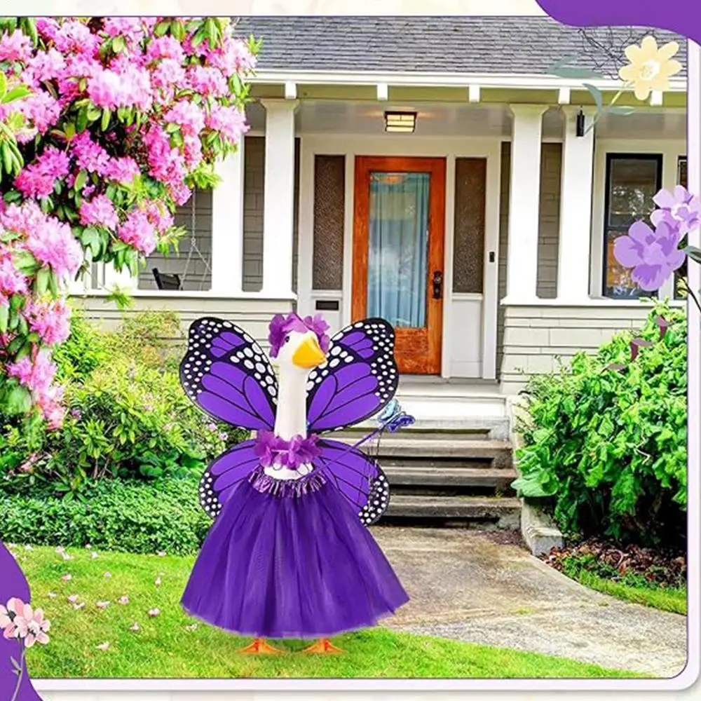 1.Distinctive Butterfly Theme: This Butterfly Porch Goose Outfit incorporates an elegant butterfly design, ensuring your pet goose captures attention and elevates the visual appeal of your outdoor space during gatherings or daily decor display