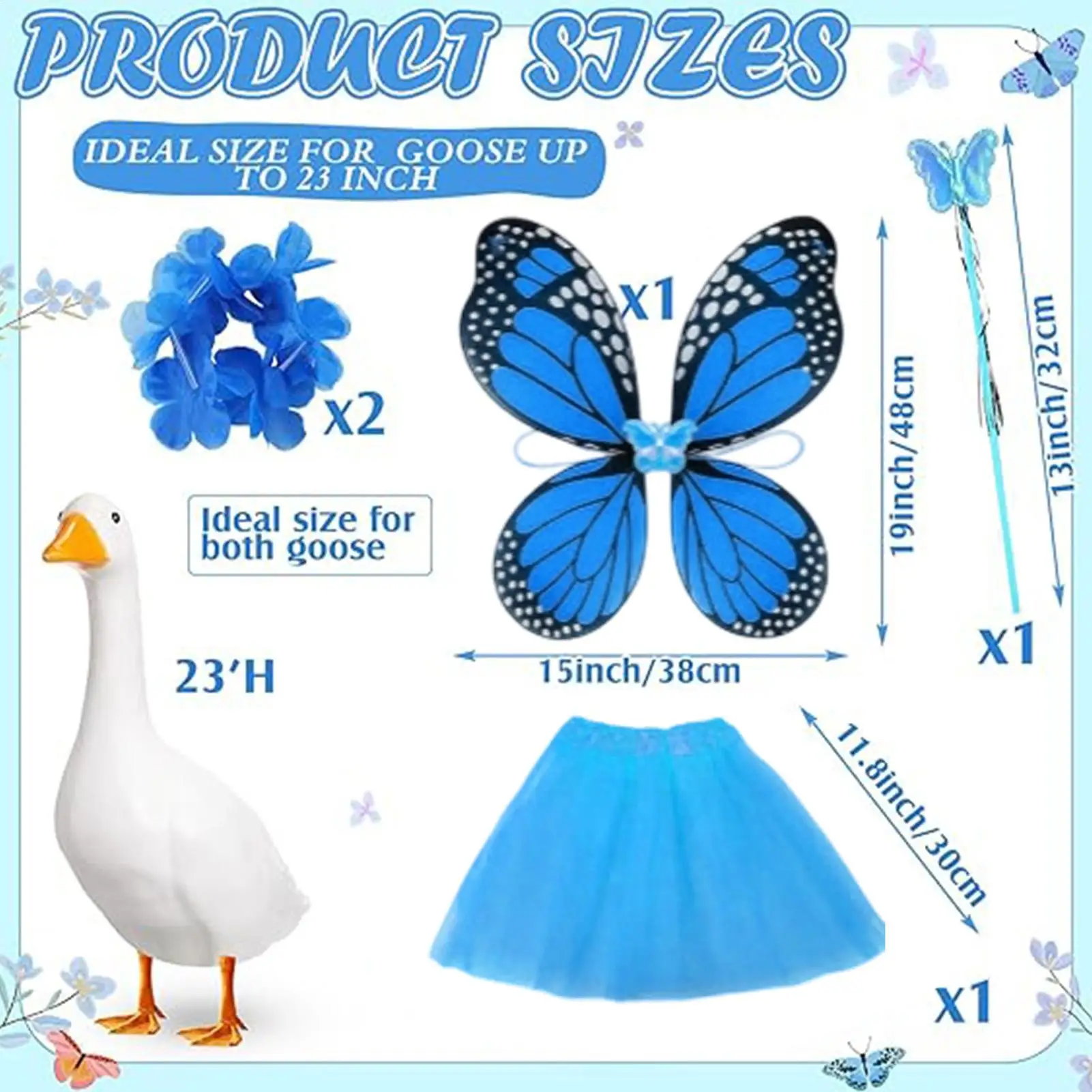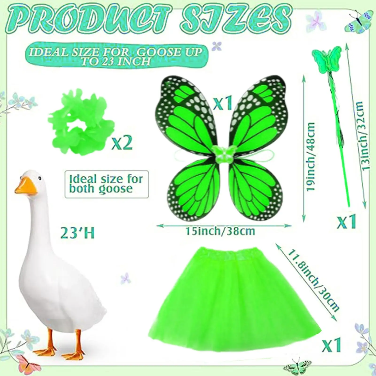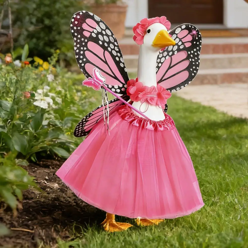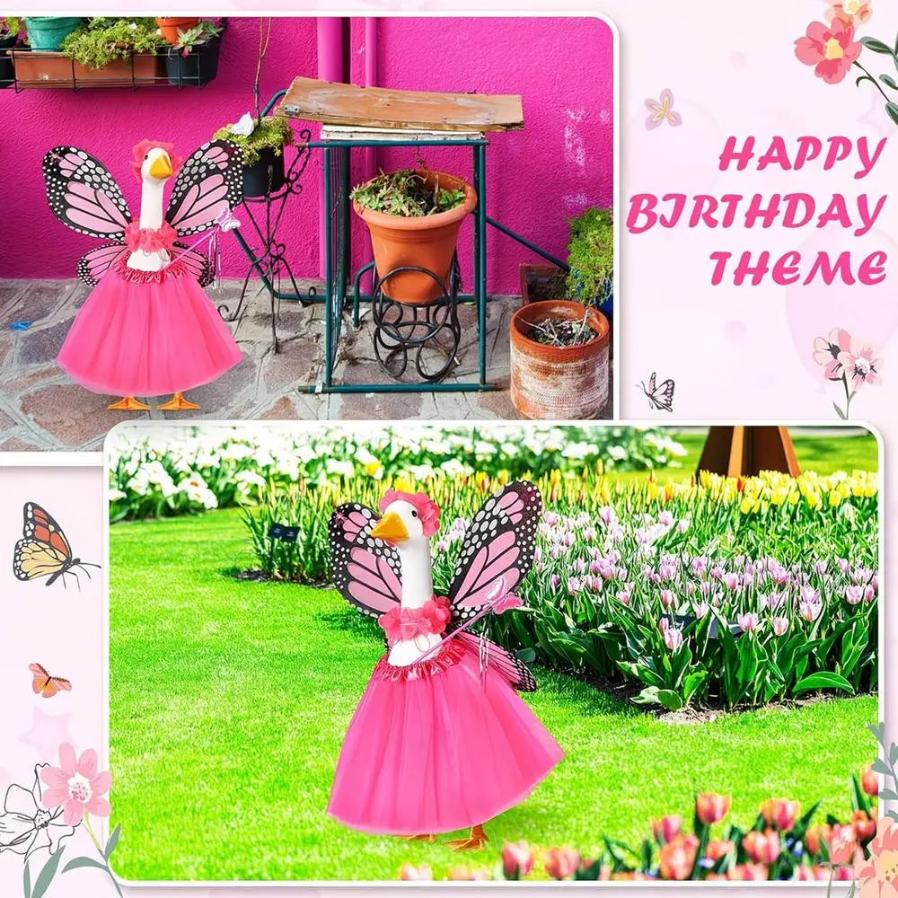 1.Distinctive Butterfly Theme: This Butterfly Porch Goose Outfit incorporates an elegant butterfly design, ensuring your pet goose captures attention and elevates the visual appeal of your outdoor space during gatherings or daily decor display