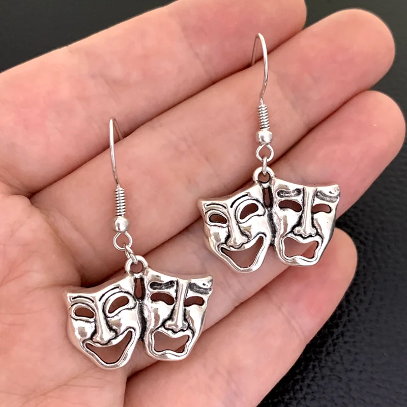 Vintage Silver Color Clown Mask Earrings Personality Smiling Face and Crying Face Earrings Motorcycle Party Punk Jewelry